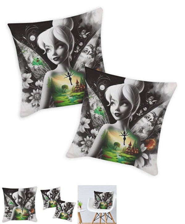 Si vous cherchez une touche magique pour votre déco, ce coussin Fée Clochette pourrait vous plaire. Avec son design tiré des cartoons, il apporte une ambiance joyeuse et colorée à n'importe quelle pièce. Les ailes scintillantes et la fleur lumineuse ajoutent un petit côté féerique qui fait rêver.
