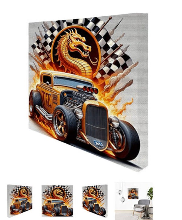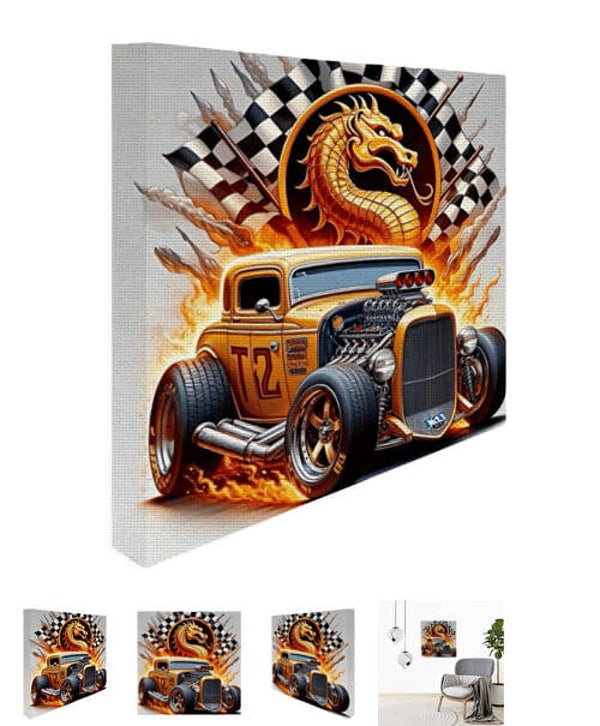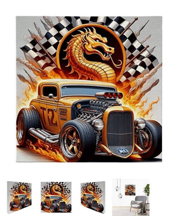Photo sur toile avec design de voiture vintage, pour la décoration intérieure. Dimensions: 50 cm (largeur) x 50 cm (hauteur) x 3 cm (épaisseur) Photos sur toile en coton de haute qualité, Monté sur un cadre en bois.