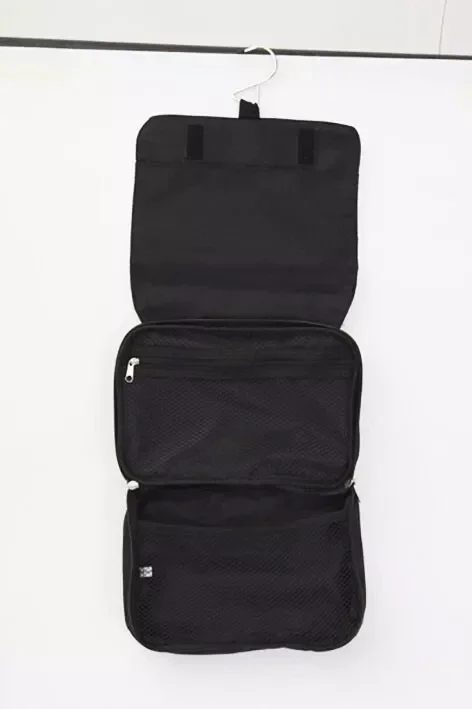 Dimensions : 23 cm de large, 15 cm de haut, et 5 cm de profondeur. Une fois ouverte, elle atteint 23 cm de large et 55 cm de long, offrant pas mal d'espace pour ranger tous vos produits. Son style noir est à la fois simple et élégant.