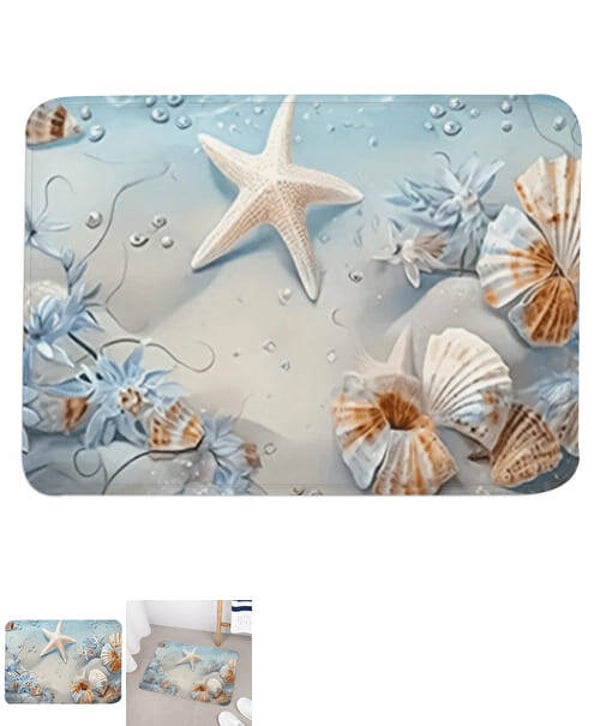 Voici un tapis de bain avec un joli motif d'océan, orné de belles étoiles de mer. Fabriqué à 100 % en polyester, il est non seulement doux au toucher mais aussi super pratique pour votre salle de bain. Avec des dimensions de 61 x 43 cm, ce tapis est parfaitement conçu pour s’intégrer dans divers espaces de votre maison.