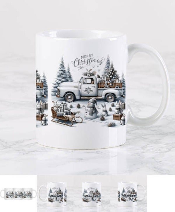 Tasse de Noël Vintage Camion avec Bonhomme de Neige & Boîtes Cadeaux - Tasse à Café Festive en Céramique, Idéale pour Cadeaux de Fêtes & Décoration Intérieure, Parfaite pour les Fêtes de Noël, Mug de Noël