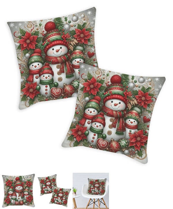 Découvrez cette housse de coussin de Noël qui fera briller votre déco ! Avec des designs adorables de bonhommes de neige, cette housse est parfaite pour ajouter une touche festive à votre maison.