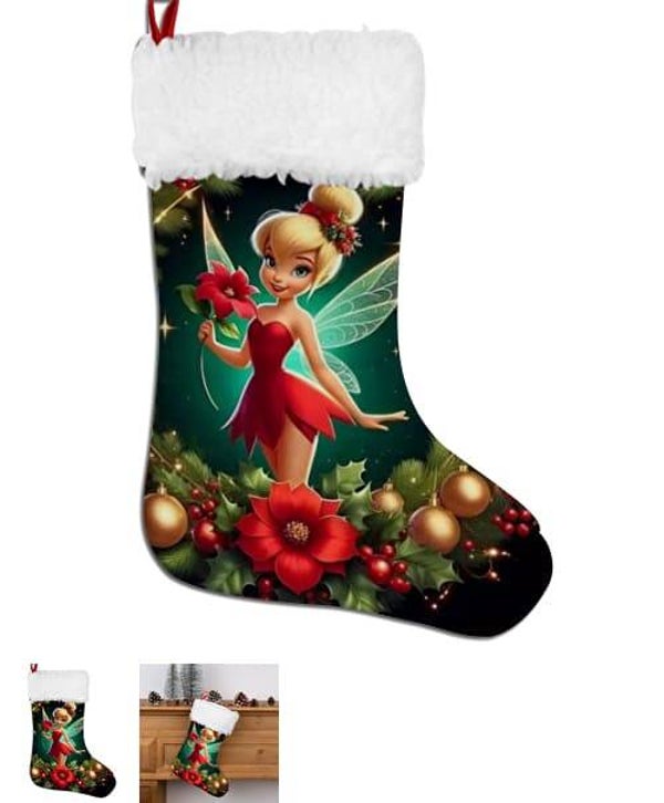 Chaussettes de Noël à Suspendre, Grande Chaussette de Noel Personnalisé Fée clochette Bas de Noël pour Enfant, Mini Chaussette de Noel a Suspendre pour Décoration Sapin de Noel Cheminée