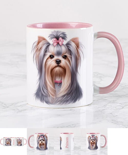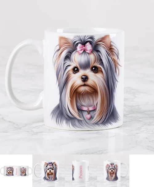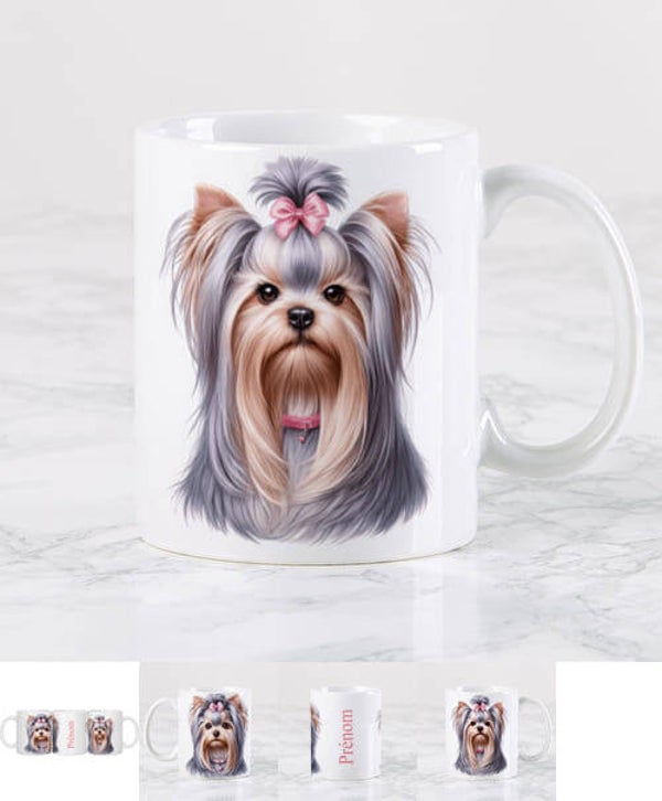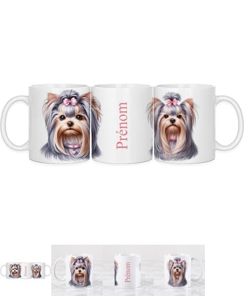 découvrez notre mug Yorkshire Terrier personnalisé ! Plus qu'un simple mug, c'est un petit bijou pour tous les amoureux des Yorkshires. Ce mug n'est pas seulement joli, il est conçu pour durer. Fabriqué en céramique résistante, il est donc idéal pour un usage quotidien. Sa contenance est généreuse : environ 325 ml, pour un grand café, un thé ou tout ce dont vous avez envie. Sa finition brillante lui donne un aspect impeccable. C'est un mug que vous aurez envie de tenir et de regarder, pas seulement de le boire. Parfait pour afficher votre amour pour votre compagnon à quatre pattes !