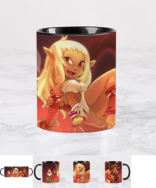 - Tasse en céramique personnalisée du jeu Dofus interprétée par les personnages Yop-tueur-a, Luidji Sram, Cat-skunk, Zing noire de haute qualité :
