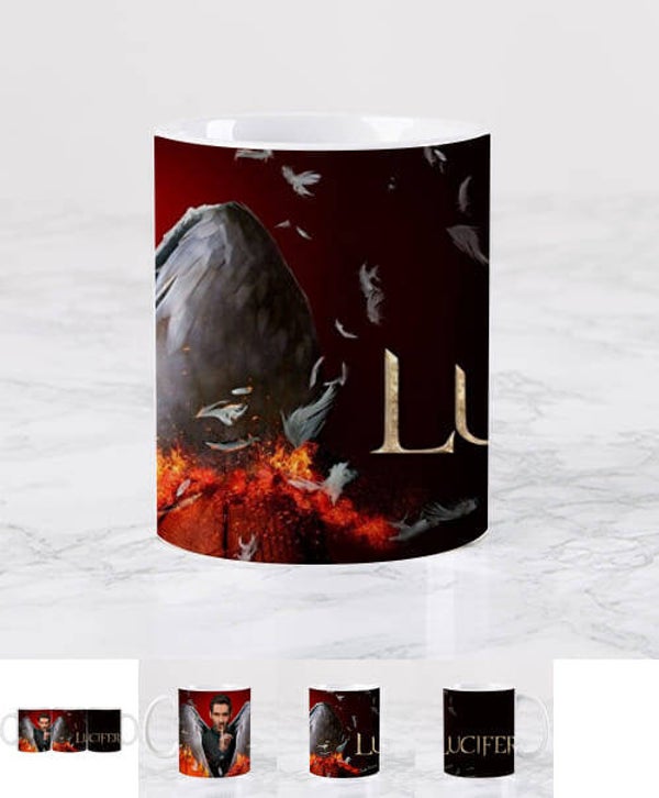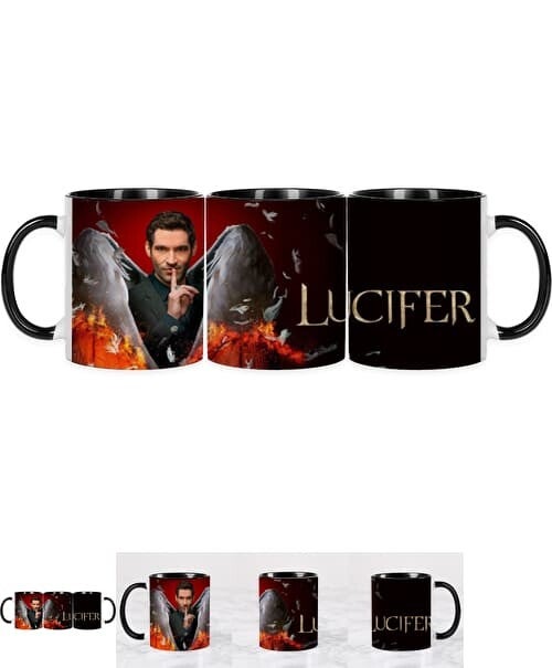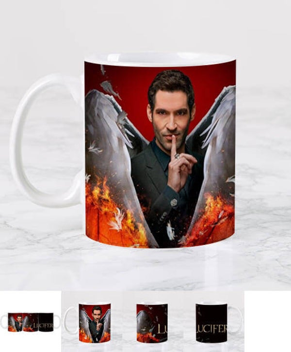 - Tasse en céramique personnalisée de la série Lucifer interprétée par Tom Ellis noire de haute qualité :