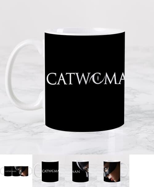 - Tasse en céramique personnalisée du film Catwoman interprétée par Halle Berry noire de haute qualité :