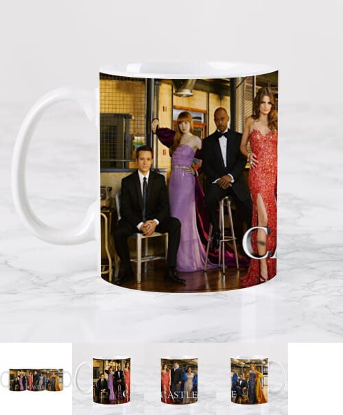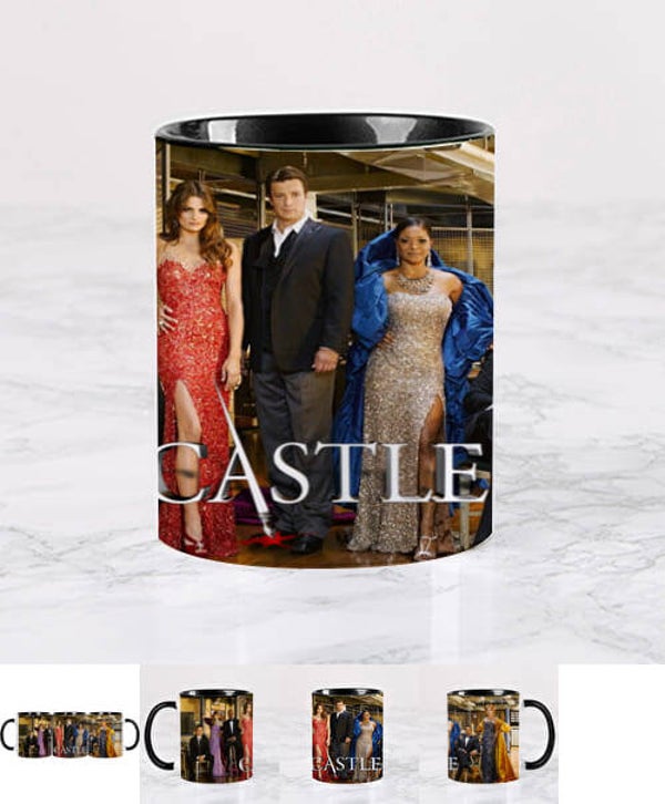 Tasse à café Castle Nathan Fillion Stana Katic Susan Sullivan verre multicolore