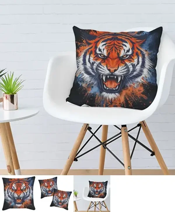 Coussin imprime tête de tigre tissu noir / 35x35 cm / 45x45 cm / 55x55 cm
