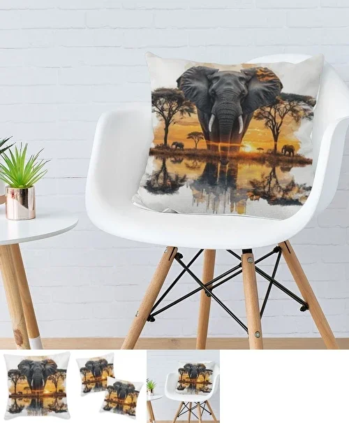 Coussin décoratif de luxe éléphant tissu blanc / 35x35 cm / 45x45 cm / 55x55 cm