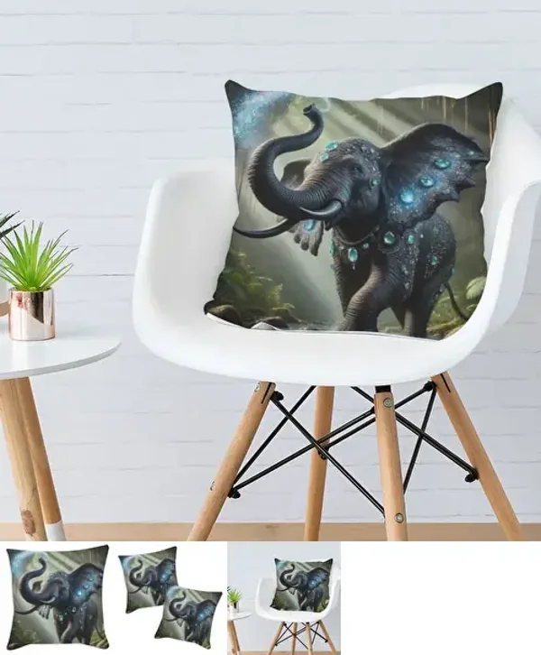 Coussin imprimé éléphant tissu vert / 35x35 cm / 45x45 cm / 55x55 cm