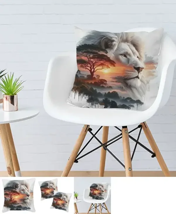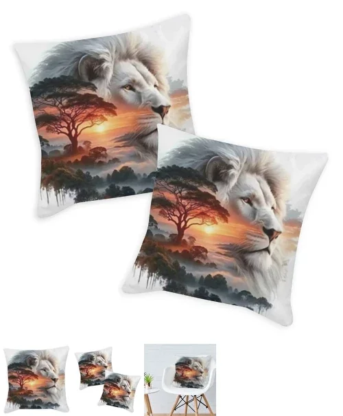 Coussin décoratif tête de lion tissu blanc / 35x35 cm / 45x45 cm / 55x55 cm