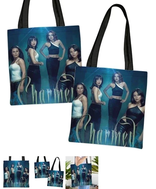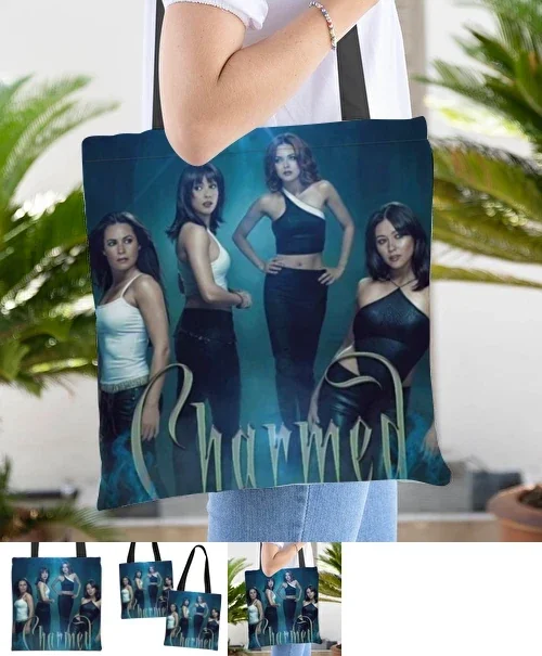 Sac Fourre-Tout inspirée de la série télévisée Charmed Multifonctionnel Réutilisable en Toile - Sac de Courses Rectangulaire Large et Robuste avec Poignée noire /Épaule, Tissu Durable pour Épicerie, Livres, Fournitures, Voyage.