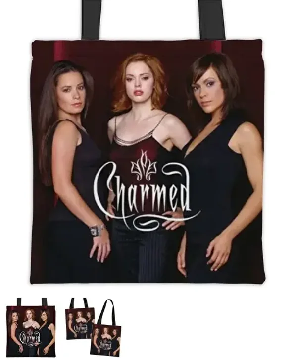 Charmed Tote Bag - sac en toile polyester durable avec design noire pailleté, parfait pour les voyages, la plage, l'école et les achats, sac fourre-tout pailleté | Sac à poignée robuste